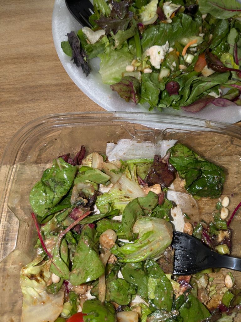 Just two people enjoying the company of each other, being honest, playful banter. Then comes dinner. Maybe some salad will set the mood right.