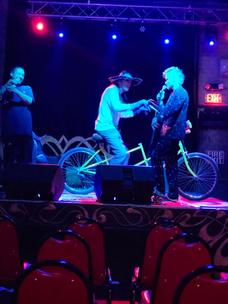 Solar culture is an art gallery in downtown Tucson, and they have very interesting paintings, such as the ones above. Well, it is a comedy open mic, but people do all sorts of things for open mic. Some do comedy, read poetry, some sing songs, while I sing songs with a twist of comedy, such as squash the roach. Well, in the last picture above is my good friend Arther to the far left, the one on the bike is Vato Pee Wee, and next to him is Adam Rant.