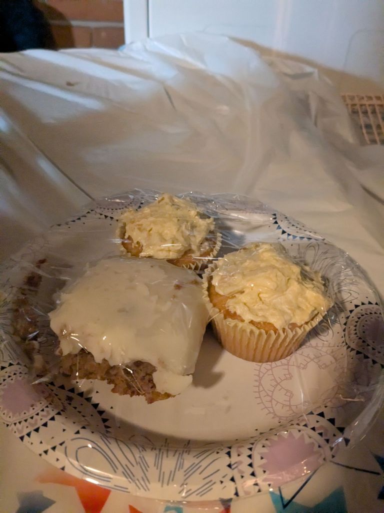 My nephew Nick and I took a picture. My niece Nari. Carrot cake and white frosting cupcakes for dessert. A picture of my mom. The last picture is of my older sister. Thank you for reading.