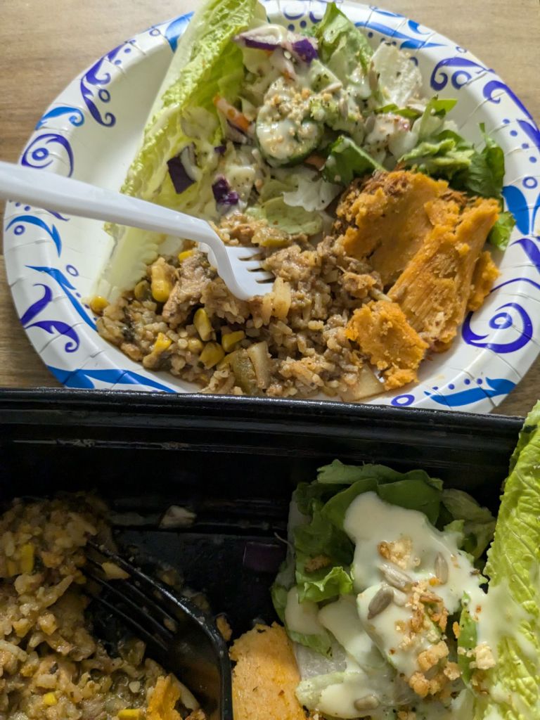 Dinner was very nice with a salad, tamales, and Spanish rice dish, that definitely did not disappoint. It was delicious. It was the perfect amount of food so after eating the food. I was not too stuffed.