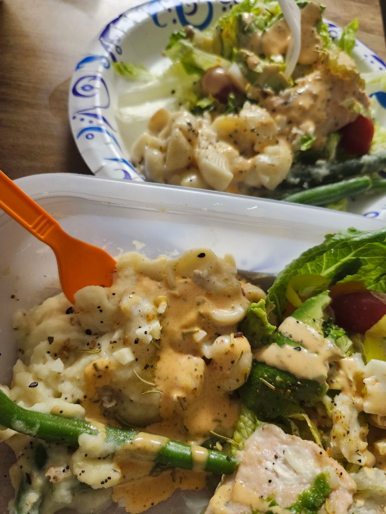 This was a delicious salad, macaroni, and cheese with a bit of mashed potatoes, chicken with green beans, broccoli, spinach, and lettuce. We have never put macaroni and cheese with mashed potatoes, which came out pretty tasty. I usually don’t eat two carbs together, but this was delightful. Along with my usual banana at night. It made it even better. Thank you for reading.