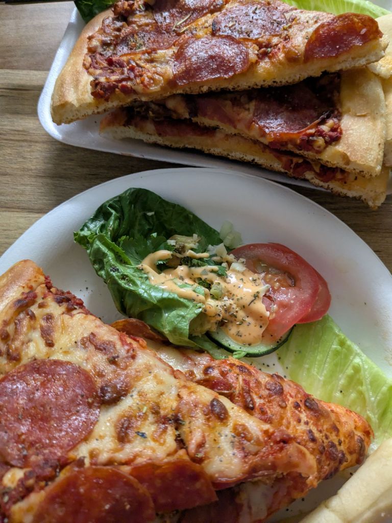 Then, for dinner, I will have another salad with pizza, burgers, wraps, or something more substantial than just a salad.