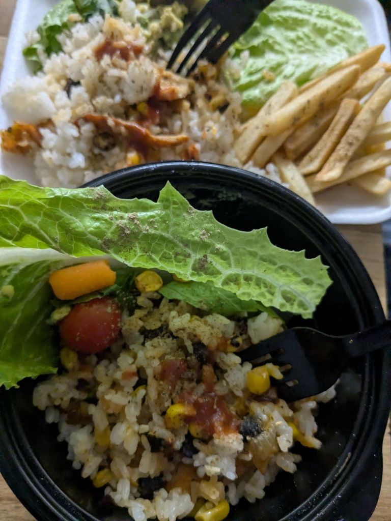 The fajita bowl from Jack in the box was very delicious, with a salad of course. It helped ease the craving I had for rice and beans.