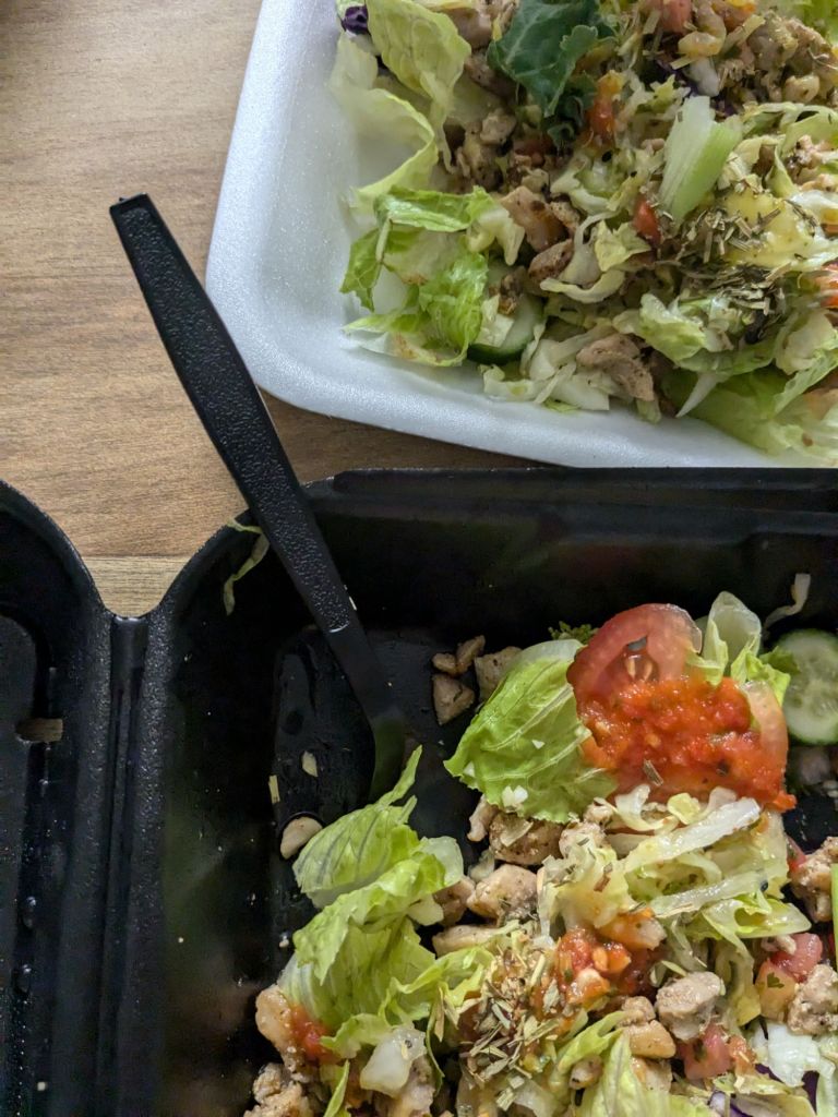 What a beautiful salad with chicken bites. It was mighty good.