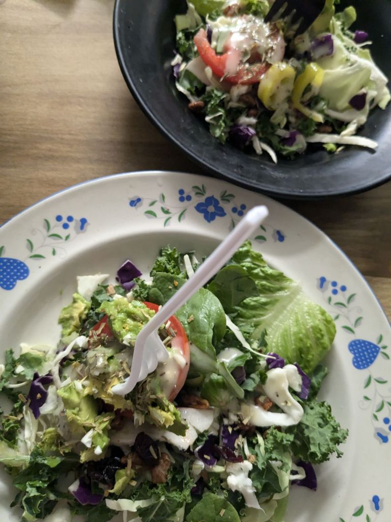 My original family used to make tacos, enchiladas, burritos, menudo, noodle dishes. We cooked a lot at home. Now with my sister and I, we eat a lot out. We eat a lot of salads too.
