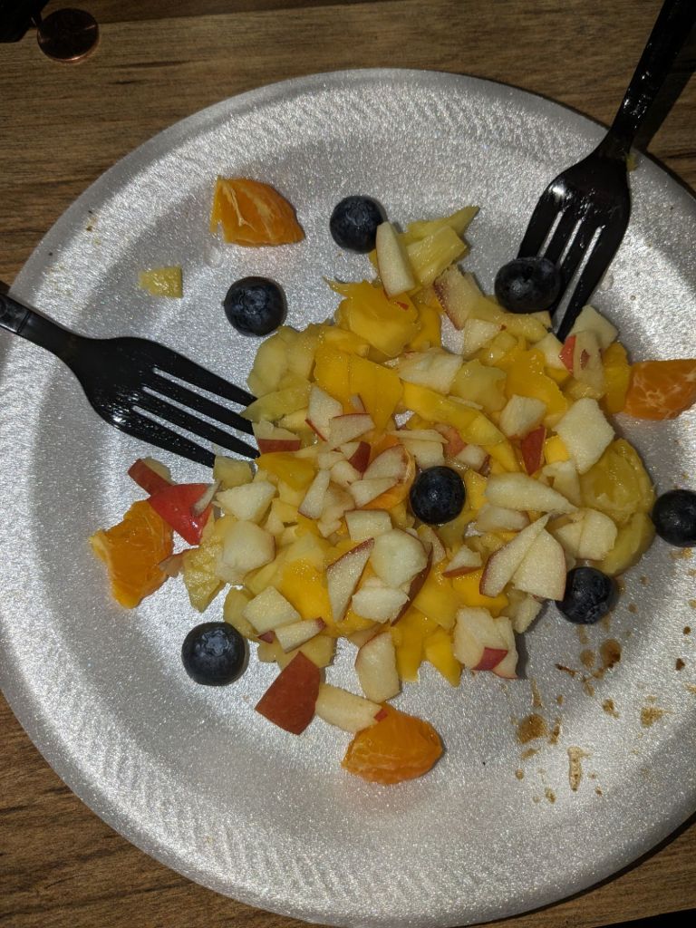 When I get up in the morning, I eat an apple and yogurt. Then, I pick up my sister and we get something to eat, either Subway, Burger King, or we go to the store, such as Sprouts. Then, we do Doordash for 3 or 4 hours. Then, I drop her off at her apartment. Then, I eat a salad and drum quietly and sing even more quietly. Then I read and say the rosary to God. Then, I take a shower and I go to bed to start the cycle again. Thank you for reading.