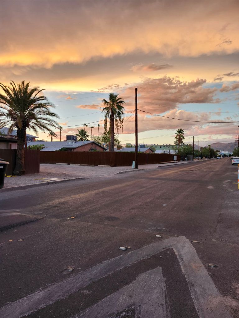 I don’t like being out in the rain. So, I stay home when it rains. People in Southern Arizona don’t know how to drive in the rain. So, to avoid accidents and flooded roads. I stay home.